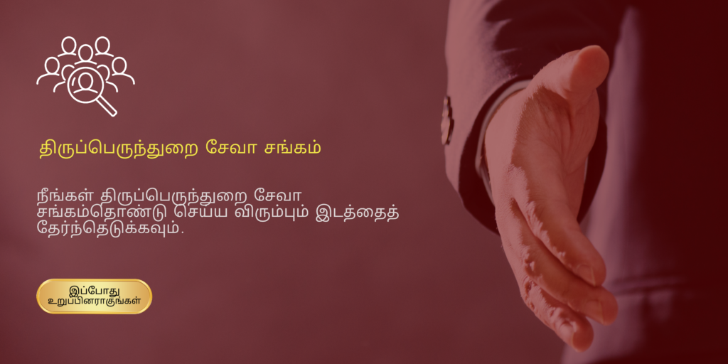 “திருப்பெருந்துறையன் சேவா சங்கத்திற்கு வரவேற்கிறோம், தாராள மனப்பான்மையின் தாக்கத்தை ஏற்படுத்தும் தளம்! கருணையுள்ள நன்கொடையாளர்களை அர்த்தமுள்ள காரணங்களுடன் இணைப்பதன் மூலம் நேர்மறையான மாற்றத்தை உருவாக்க எங்கள் சமூக நன்கொடை இணையதளம் அர்ப்பணிக்கப்பட்டுள்ளது. எண்ணற்ற முன்முயற்சிகள் மற்றும் நிறுவனங்களை ஆராய்ந்து, பயனுள்ள திட்டங்களுக்கு பங்களிக்கவும், மேலும் சமூகத்தில் சேரவும். கூட்டுக் கொடுக்கும் சக்தியை நம்புகிறது.